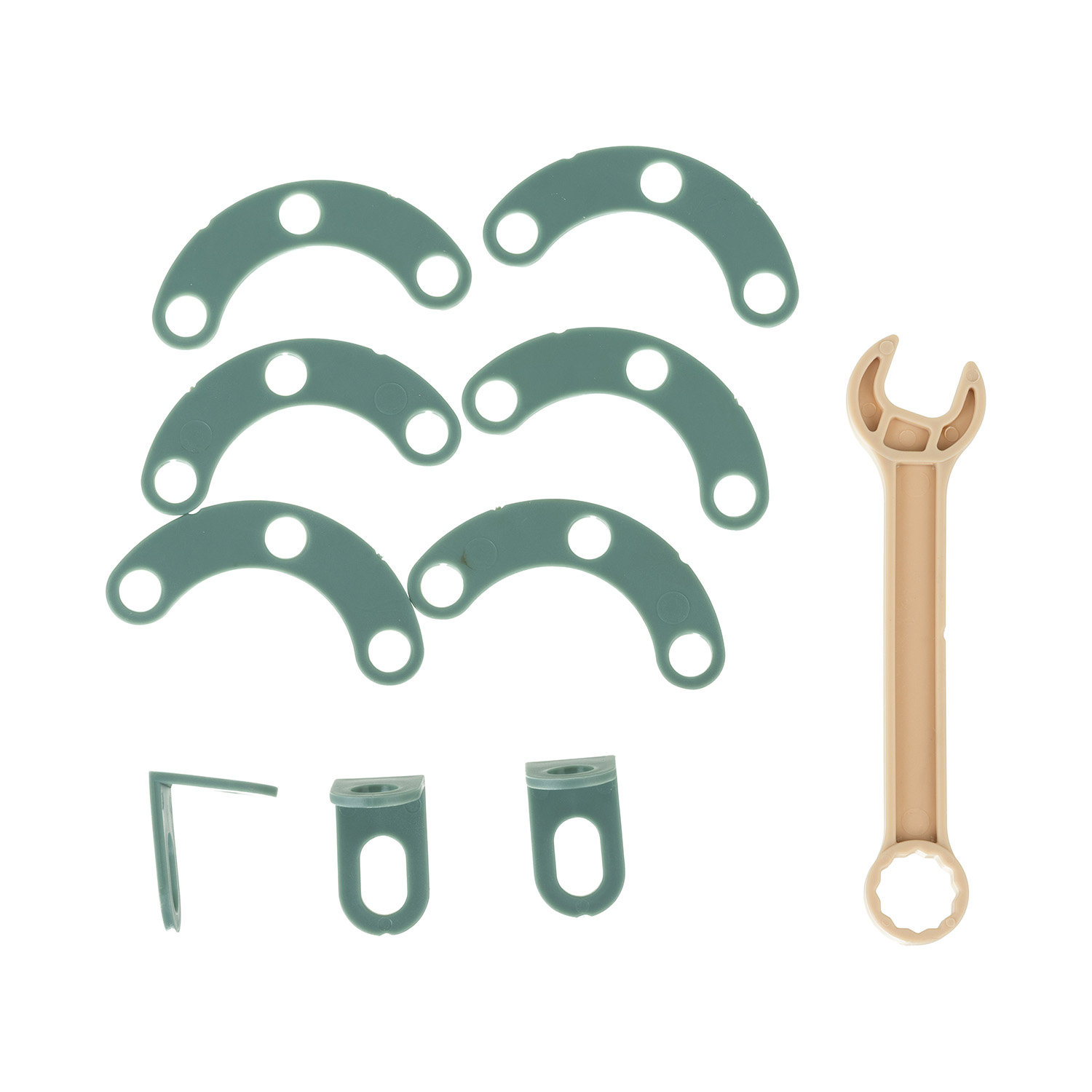 - Lærerike fargerike deler – Stimulerer læring av farger, former og presisjon. Inkluderer 40 skruer, 40 muttere samt verktøy og tilbehør.