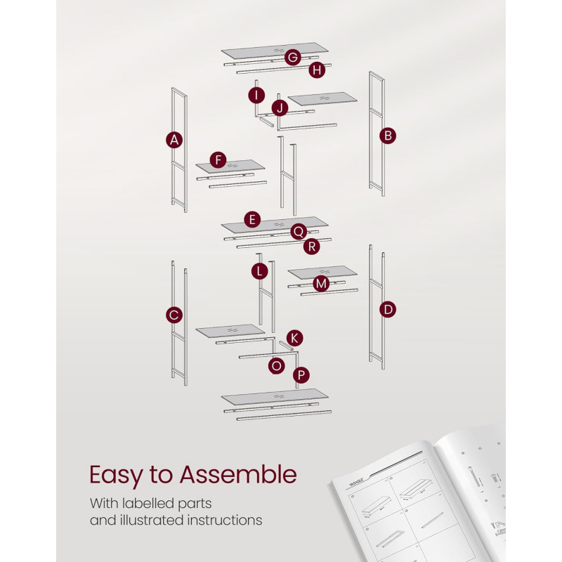 Unik 6-etasjes design med åpne hyller i ulike høyder – passer gjenstander i flere størrelser