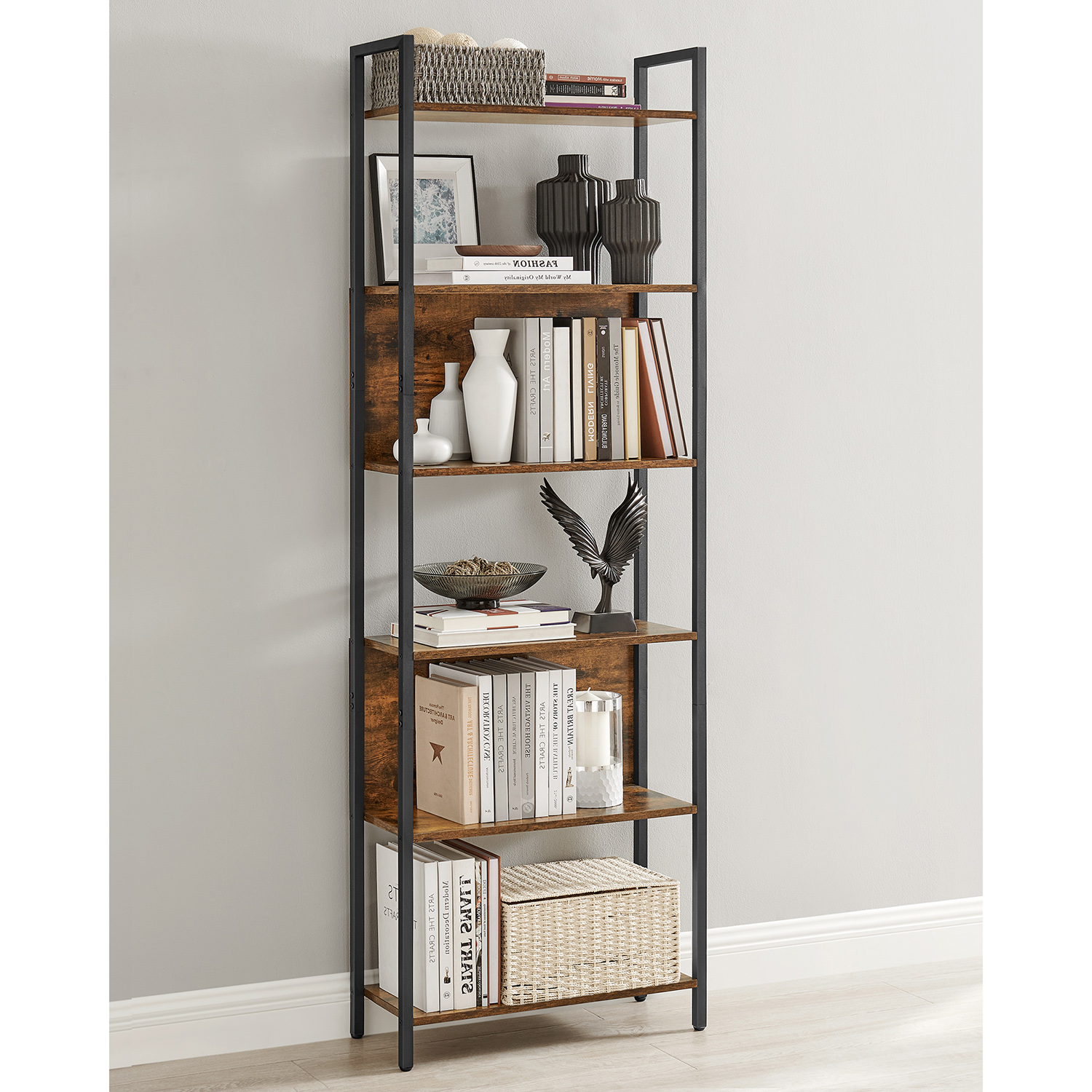 Bokhylle med 6 nivåer i industriell stil – vintage brun, 60 × 24 × 186 cm