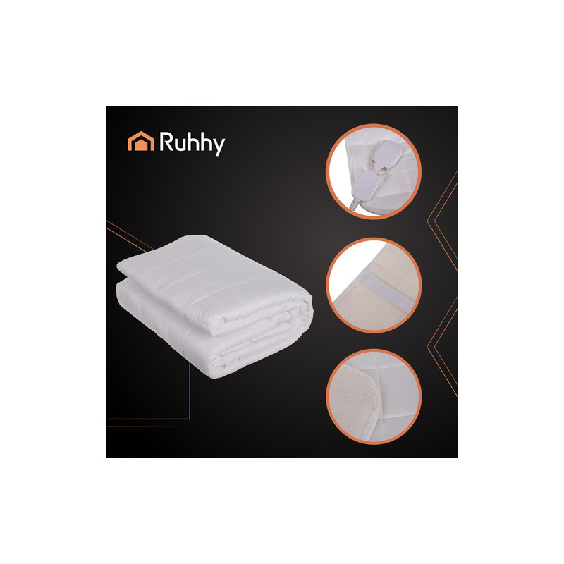 Elektrisk overmadrass 190 × 80 cm hvit med 9 varmenivåer, timer og fjernkontroll