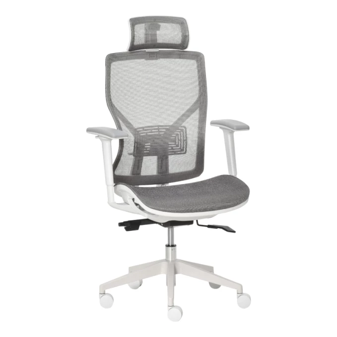Denne kontorstolen kombinerer ergonomisk design med høy komfort for lange arbeidsdager. Med sitt ergonomisk formede ryggstøtte og ekstra myk polstring gir stolen god støtte for rygg og nakke. Nakkestøtten og armlenene er justerbare i høyden, noe som gjør det enkelt å tilpasse stolen etter dine individuelle behov og skrivebordets høyde.