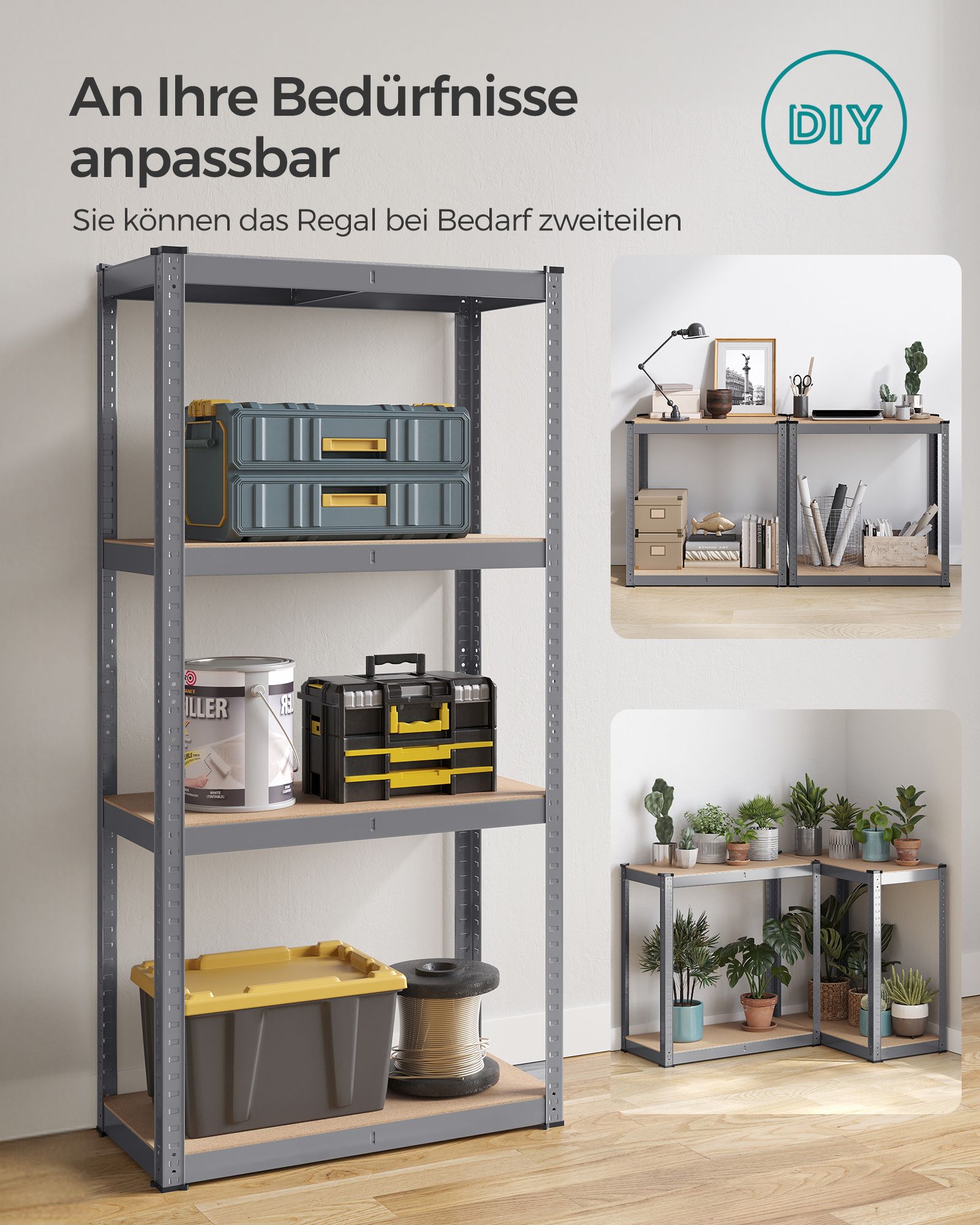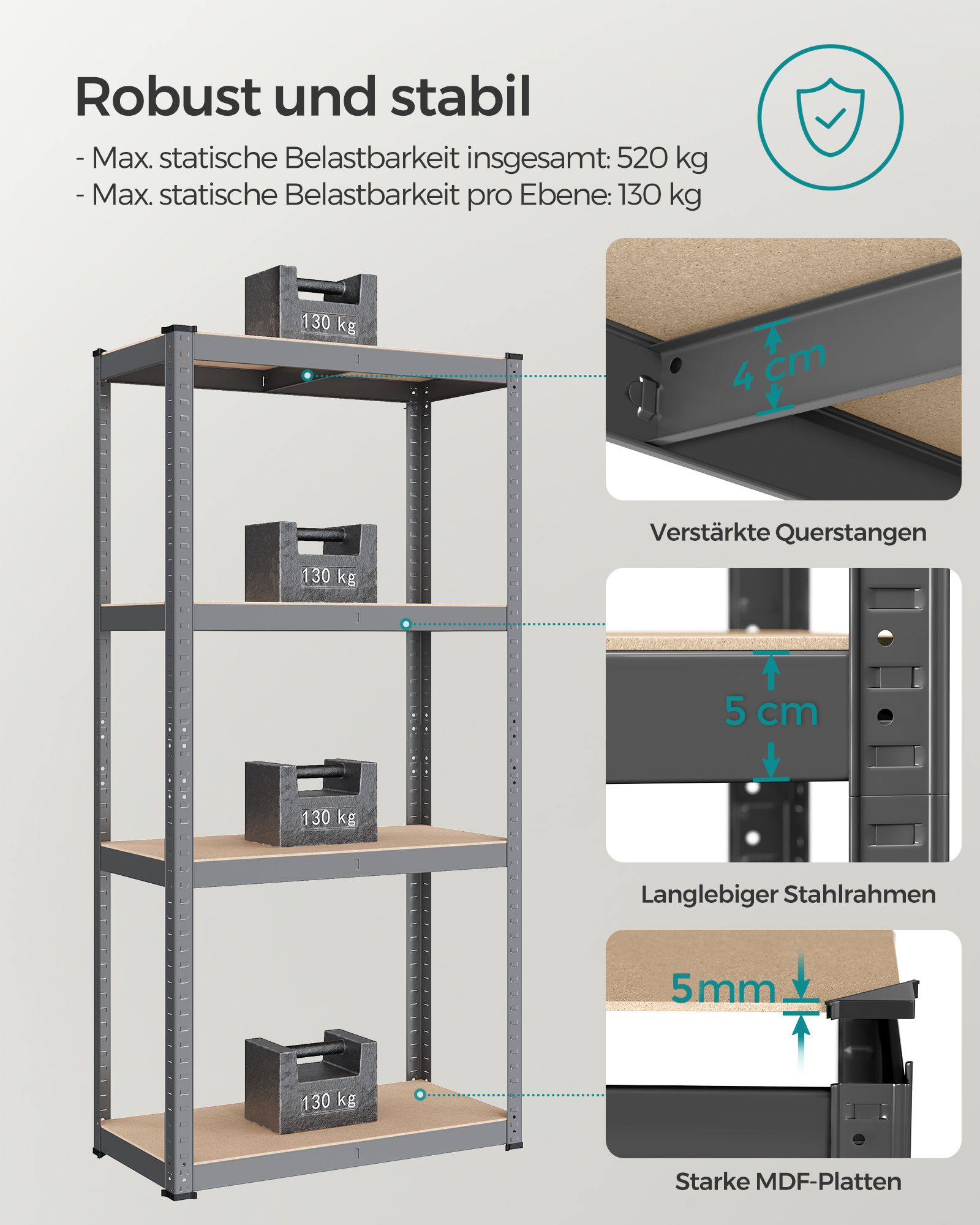 Heavy-duty hylleenhet for bod/verksted, 80 x 40 x 160 cm – grå, 520 kg