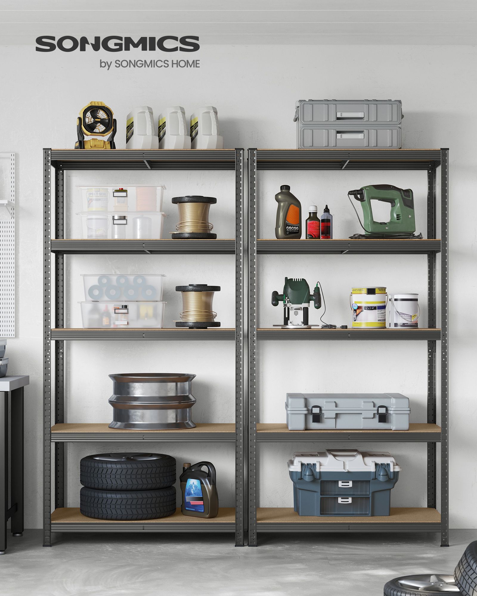 Heavy duty-lagerreol som passer perfekt i garasje, kjeller, bod og verksted for stabil og organisert oppbevaring