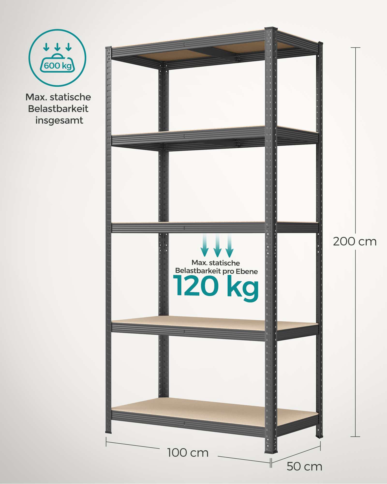 Maks statisk belastning per hylle: 120 kg