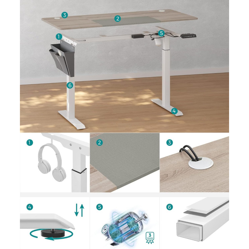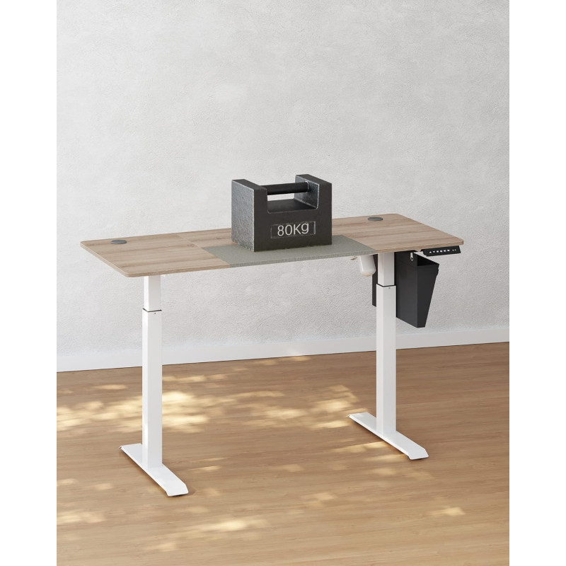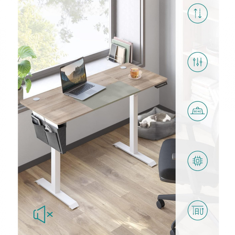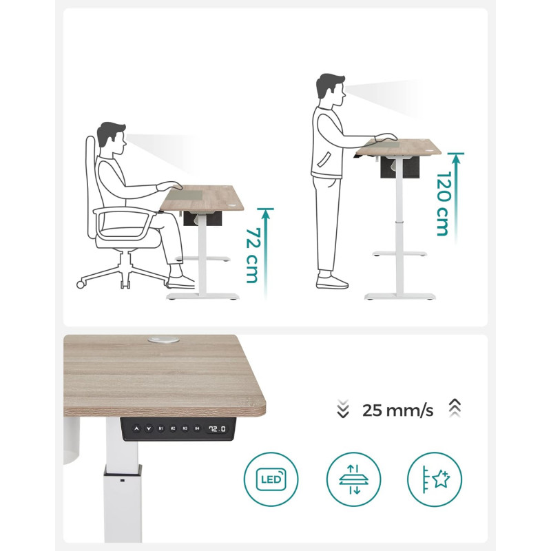 Hev- og senkbart elektrisk skrivebord 140 × 60 – greige/hvit, 72–120 cm