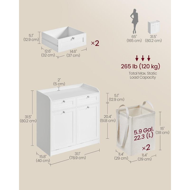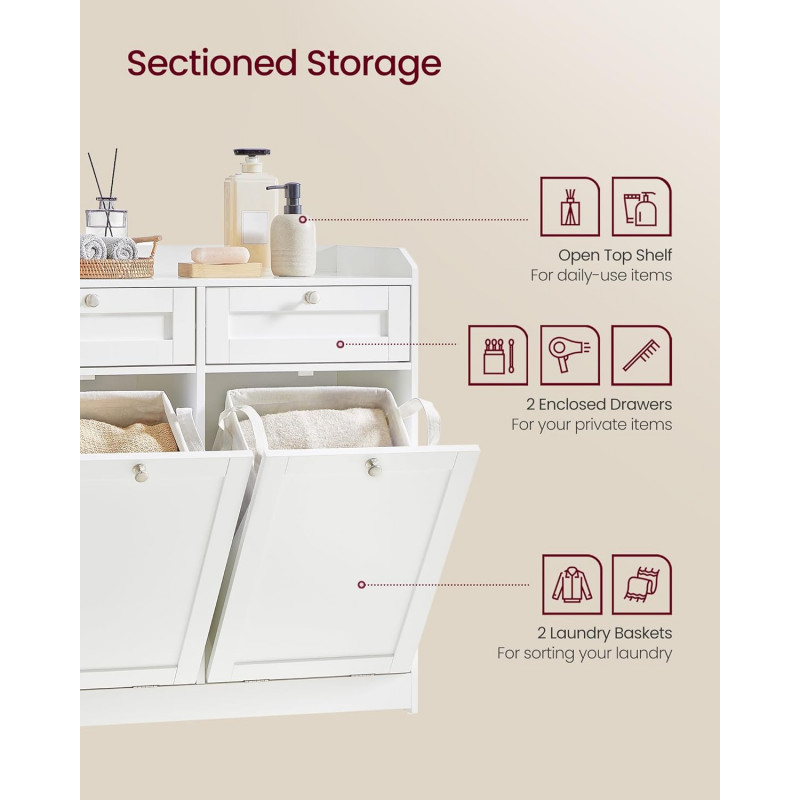Baderomsskap med hylle, skuffer og 2 skittentøykurver som gir smart oppbevaring og enkel sortering av tøy i ett