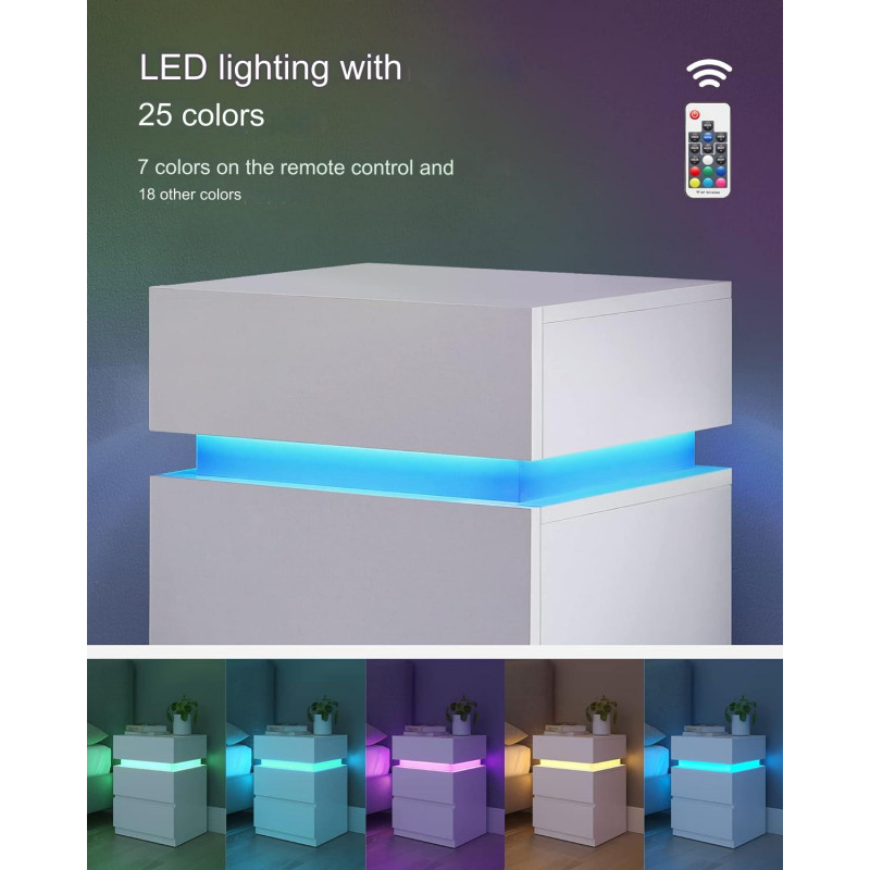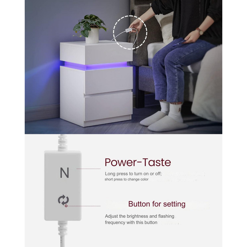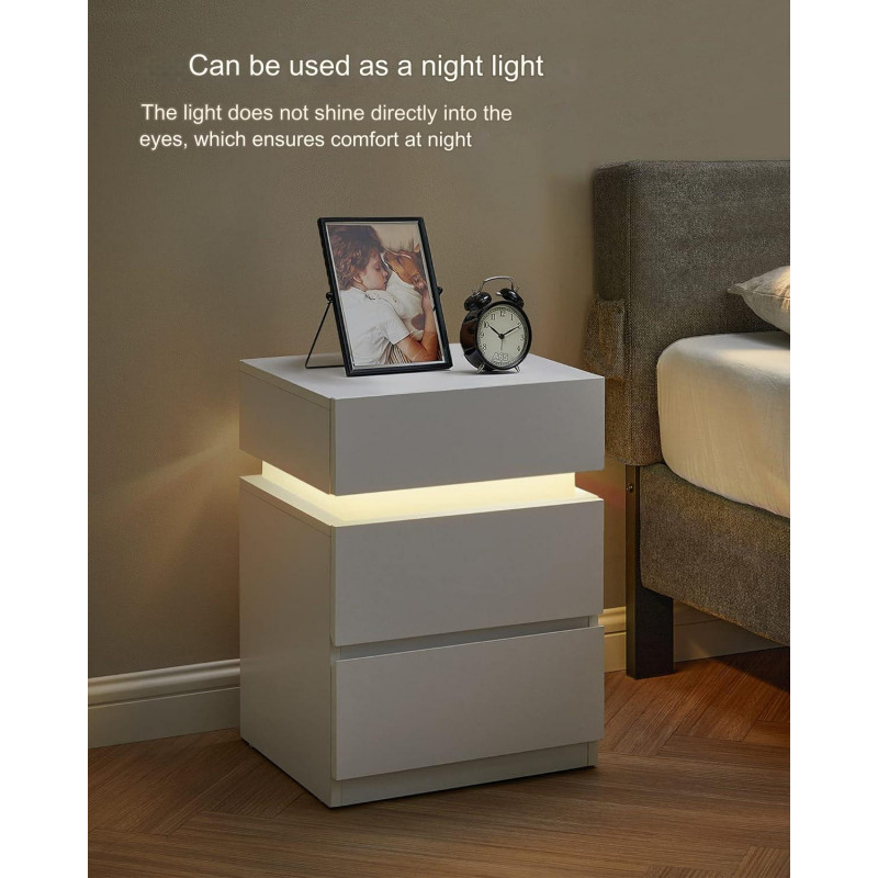 Hvitt nattbord med integrert belysning – 35 × 40 × 55 cm