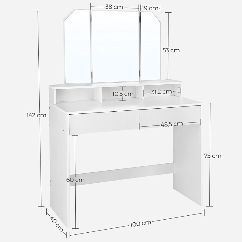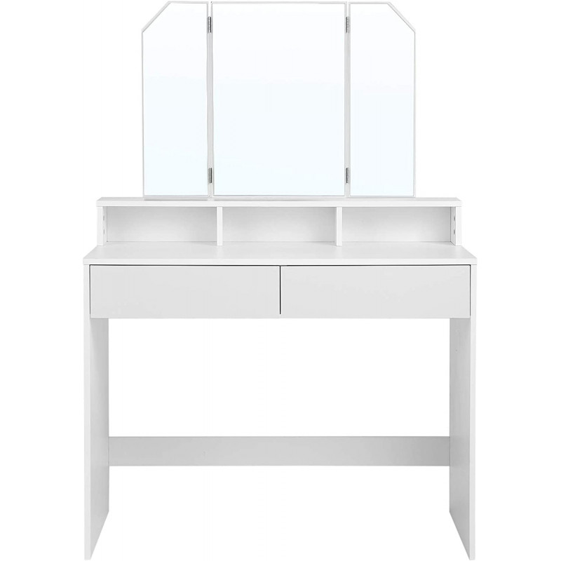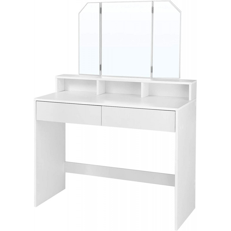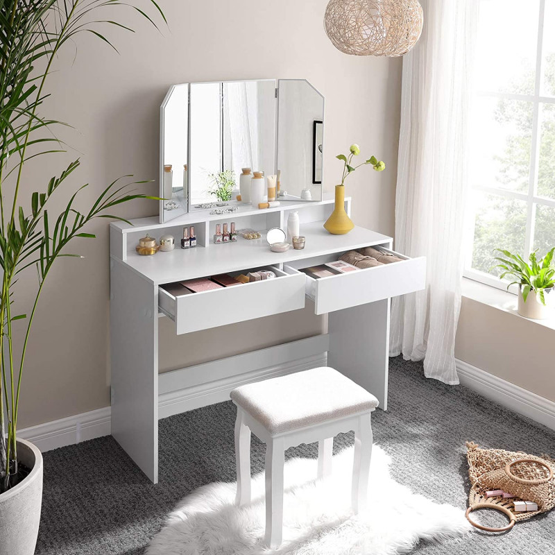 Hvitt sminkebord med tredelt speil