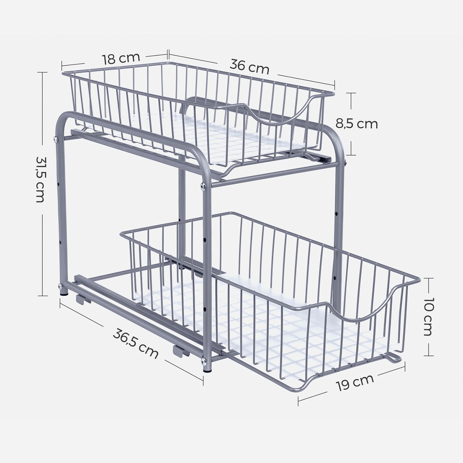 Størrelse (stor kurv øverst): 21 × 36,5 × 33,7 cm (D × B × H)