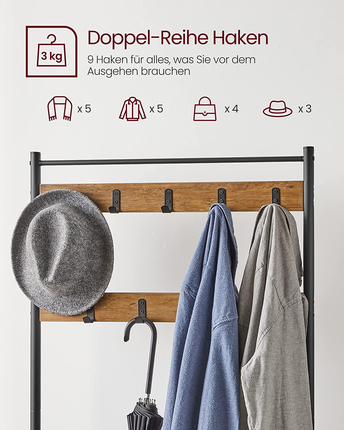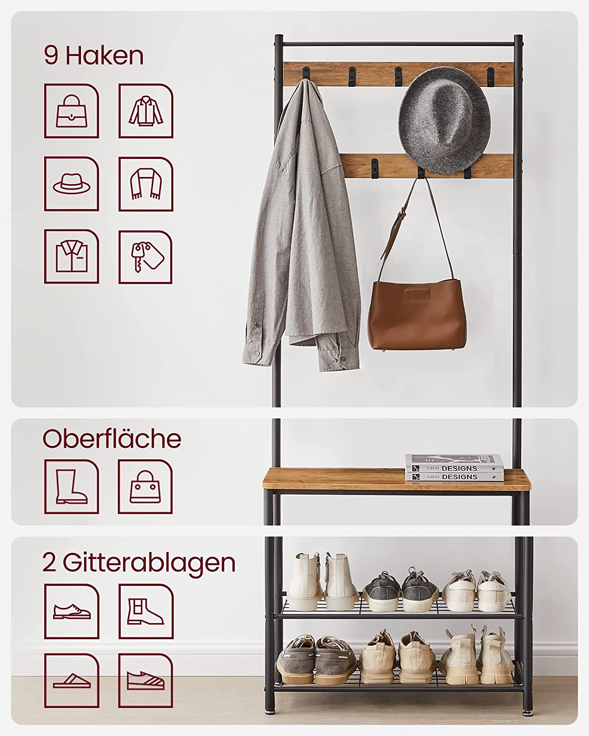 Klesstativ med benk og skohylle i rustikk valnøtt/svart