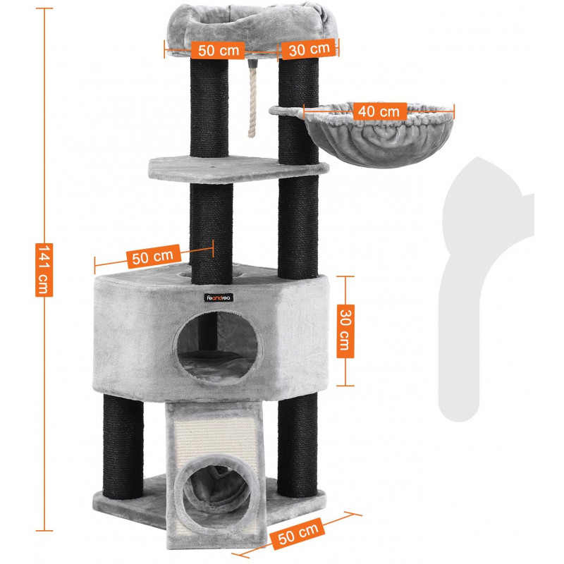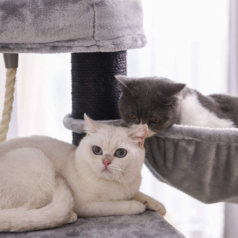 Luksuriøst kattetre med flere hvileplasser og lekeelementer for en aktiv og fornøyd katt