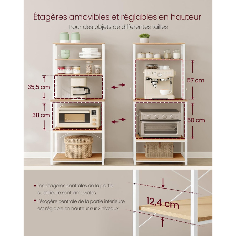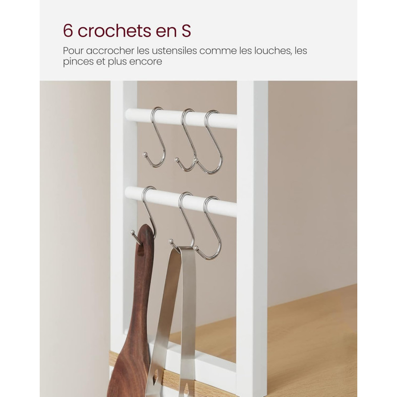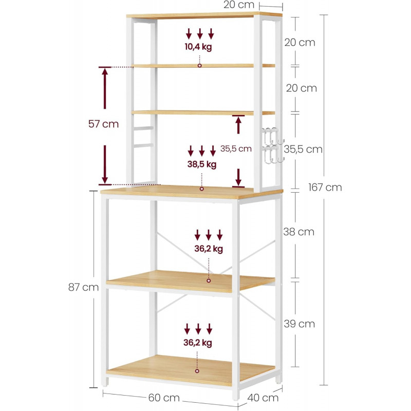 Kompakt kjøkkenstativ med arbeidsflate og 6 hyller – hvit og eik, 60 × 40 × 167 cm