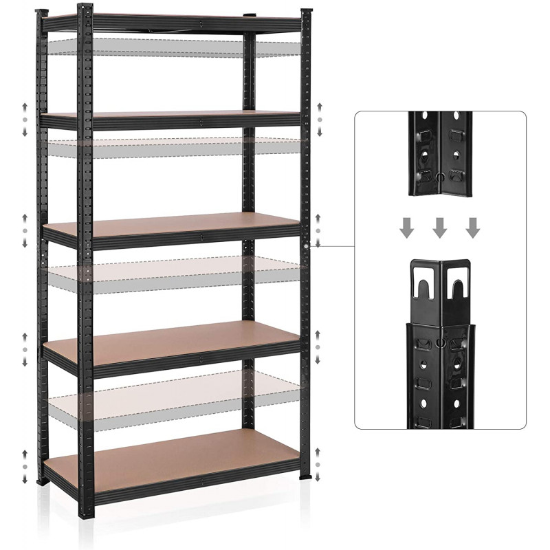 Kraftig oppbevaringshylle 875 kg – 90 × 40 × 180 cm, svart