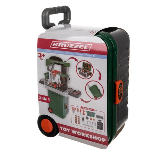 ✔ Dette barneverkstedet med verktøy og koffert er et smart 3-i-1 pedagogisk lekesett for små gjør-det-selv-entusiaster.