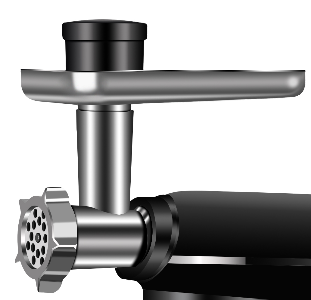 ✓ Kjøttkvern med tre kvernskiver + matingstrakt og kjøttpresser følger med.