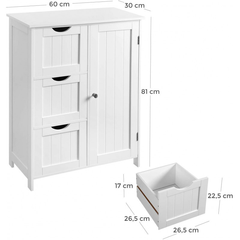 Oppbevaringsskap i retro hvit med 3 skuffer – 60 × 30 × 81 cm
