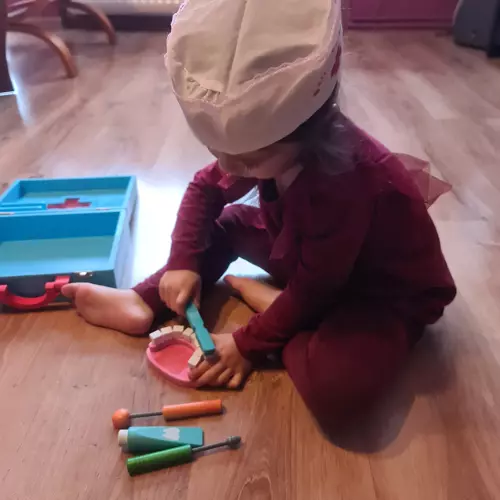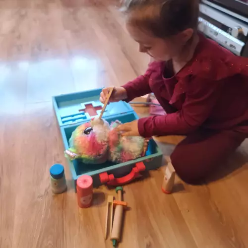 Barn kan behandle dukker, bamser eller foreldre og utvikle både fantasi og selvtillit. Settet oppmuntrer også til samarbeid og sosial lek.