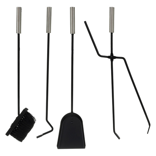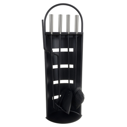 Dette solide og stilrene 5-i-1 settet inneholder alt du trenger for å håndtere peisen eller vedovnen: tang, spade, kost og ildrake. Alle delene henger pent på det medfølgende stativet, noe som kombinerer funksjonalitet med estetisk utforming.