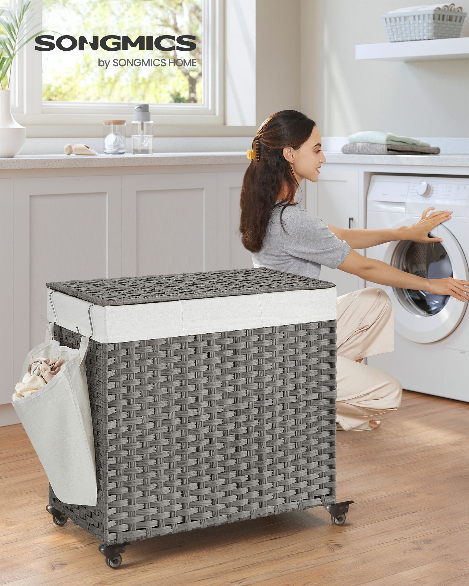 Skittentøykurv med 3 rom som gjør det enkelt å sortere lyse, mørke og delikate plagg med én gang