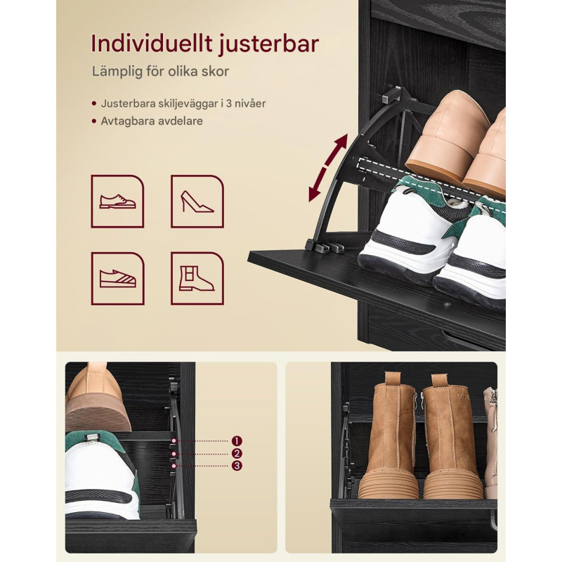 Stilrent skoskap i svart som hjelper deg å skape orden i gangen, selv i trange områder