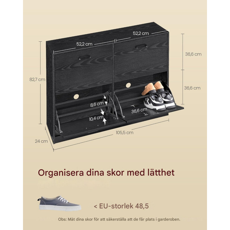 4 praktiske dører med plass til opptil 28 par sko, perfekt for hele familien