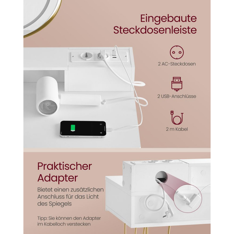 Elegant, minimalistisk design i hvitt som passer i de fleste soverom og sminkekroker