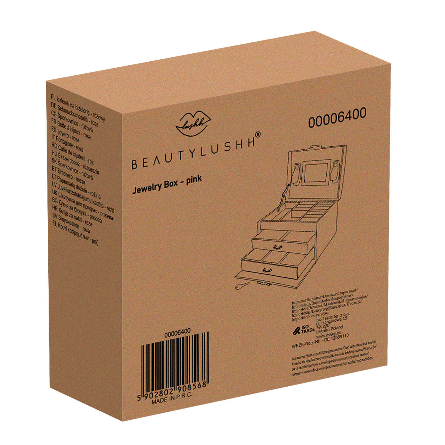 Hold orden på favorittsmykkene dine. Dette smykkeskrinet med 20 rom og nøkkellås har en myk, beskyttende innredning og et glasslokk som gjør det enkelt å se innholdet. Den stilrene rosa designen passer perfekt i både soverom og garderobe.