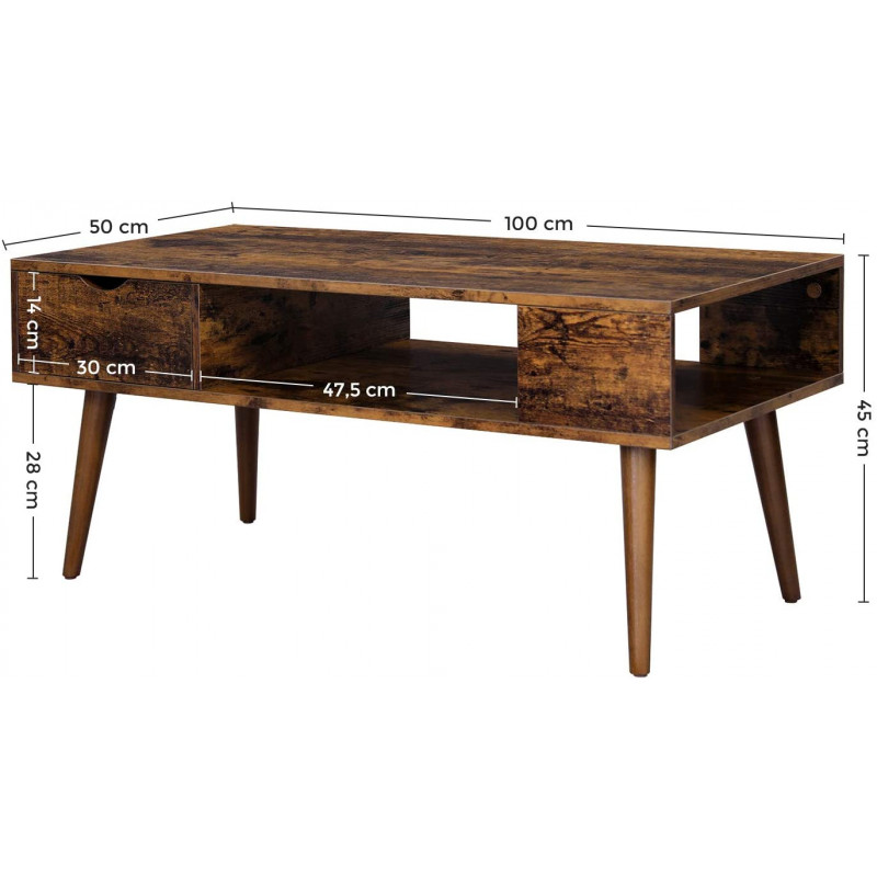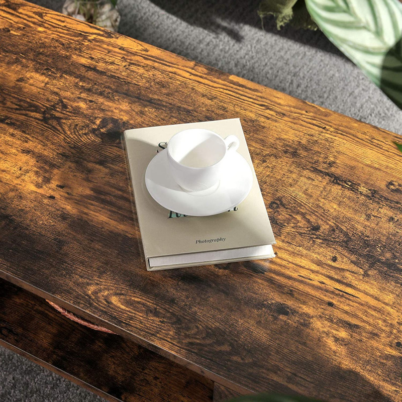 Sofabord i vintage brun med skuff og praktisk åpen oppbevaring, 100 × 50 × 45 cm