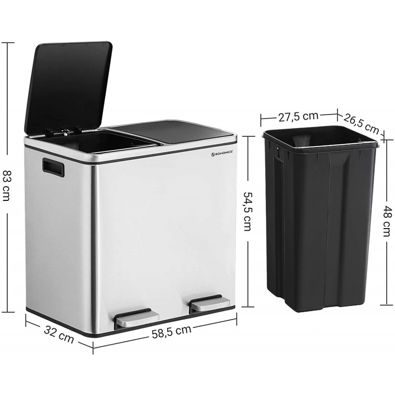 Søppelbøtte med to rom og pedal, rustfritt stål, 48 L (2×24 L)