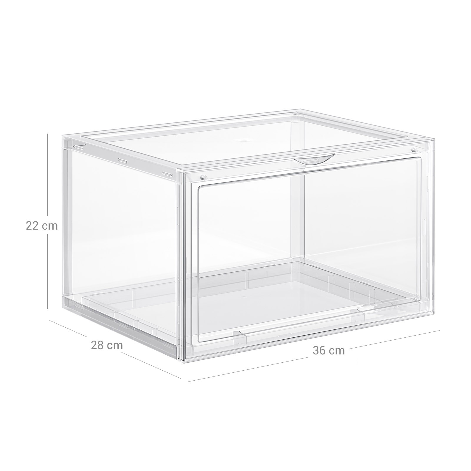 Stabelbare oppbevaringsbokser med dør, 6 stk – 36 × 28 × 22 cm, transparente