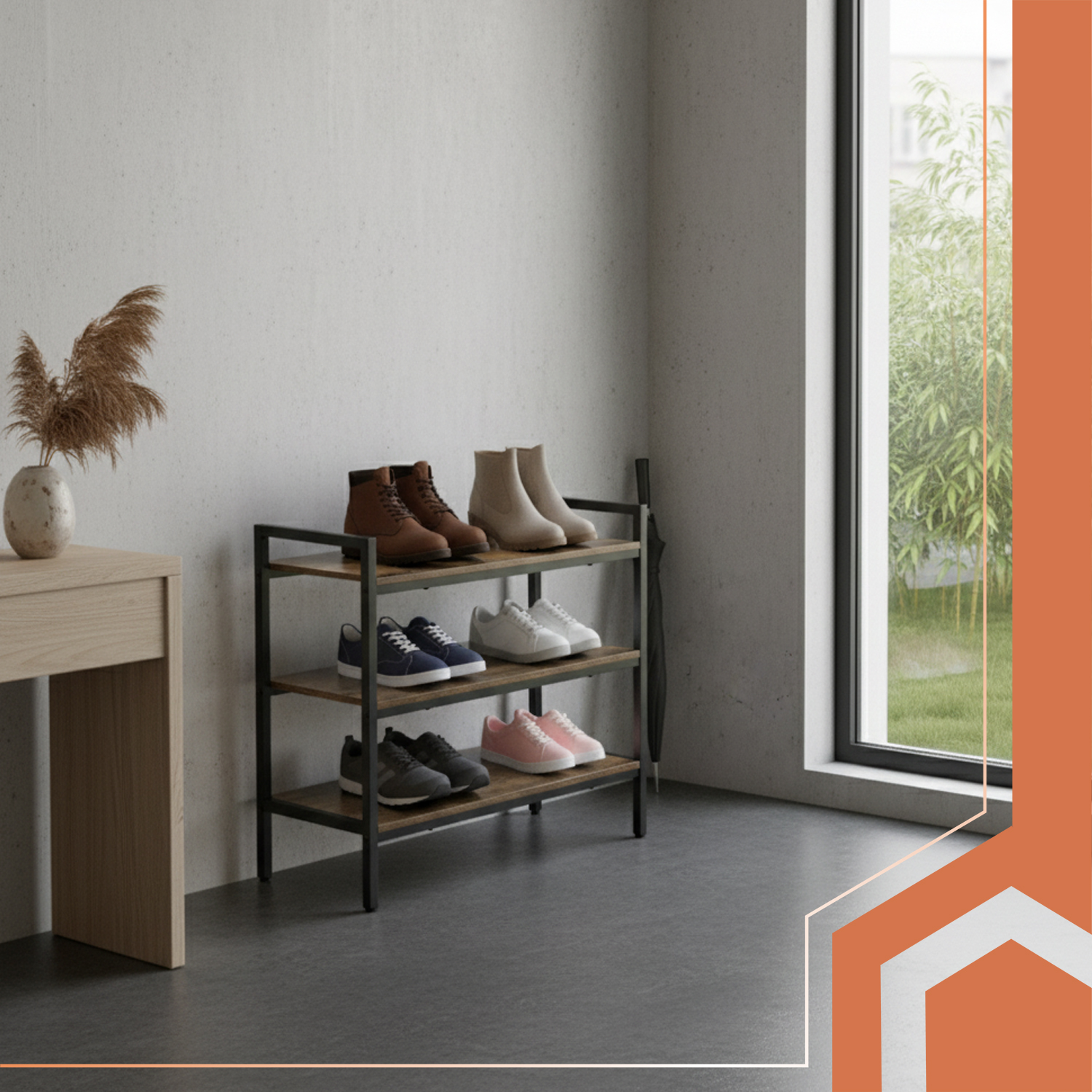 - Tre romslige hyller med bæreevne på opptil 30 kg hver – ideell for hele familiens skotøy.