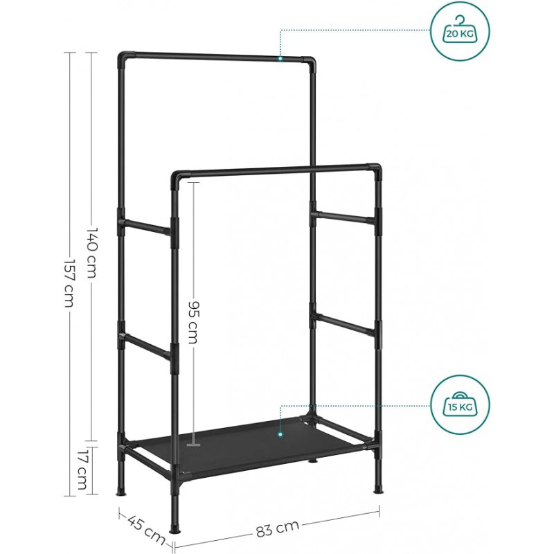 Med en robust stålramme og slitesterk overflate får du et holdbart møbel som tåler daglig bruk og holder formen over tid. Den åpne designen gjør det enkelt å vise frem og sortere klær, sko og vesker uten at det føles overfylt — ideelt både for små leiligheter og større hjem.